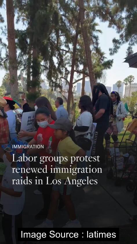 로스앤젤레스 다운타운에서 수천 명의 이민자와 지지자들이 연방 이민 단속에 맞서 거리로 나섰습니다. 그들은 ...